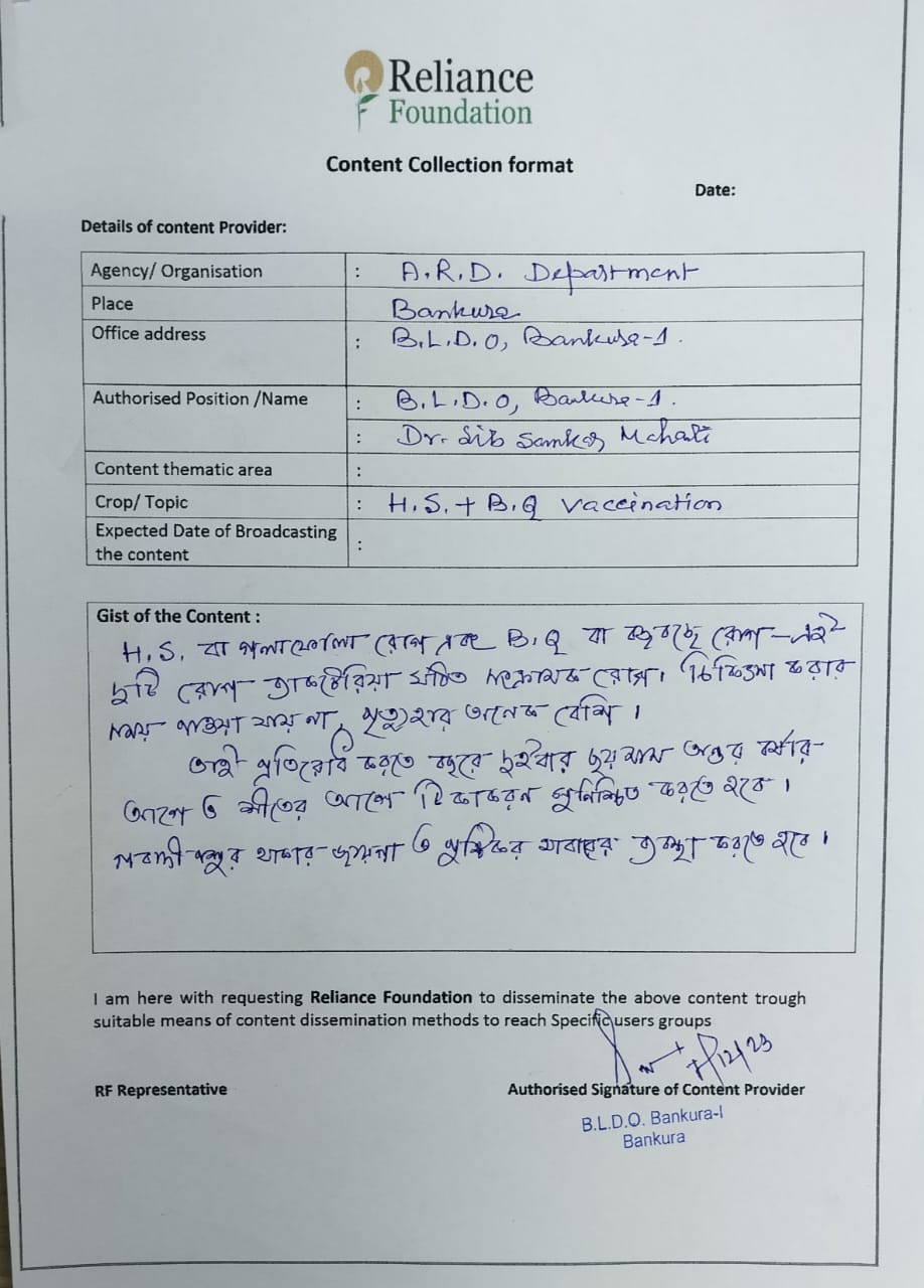 ரிலையன்ஸ் பவுண்டேசன் வழங்கும் உழுந்து சாகுபடி செய்த விவசாயிகளுக்கான தகவல்.