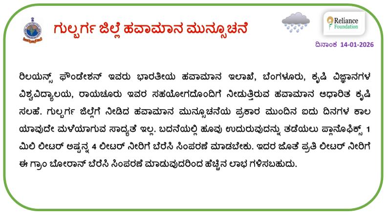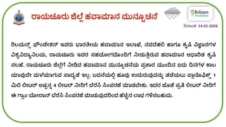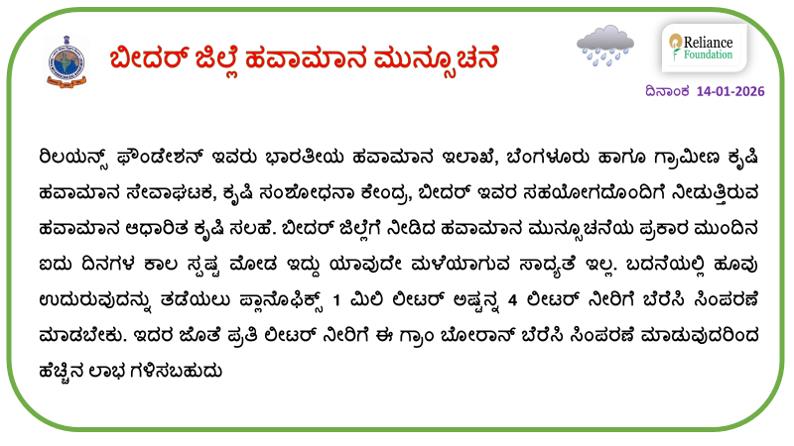 ಹವಾಮಾನ ಮುನ್ಸೂಚನೆ ಮತ್ತು ಬದನೆಯಲ್ಲಿ ಹೂವು ಮತ್ತು ಕಾಯಿ ಉದುರುವುದರ ನಿರ್ವಹಣೆ