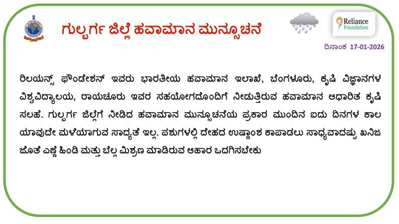 ಹವಾಮಾನ ಮುನ್ಸೂಚನೆ ಮತ್ತು ಜೋಳದಲ್ಲಿ ಕಾಳು ಕಟ್ಟುವ ಹಂತದಲ್ಲಿ ಕೀಟ ಮತ್ತು ನೀರಿನ ನಿರ್ವಹಣೆ