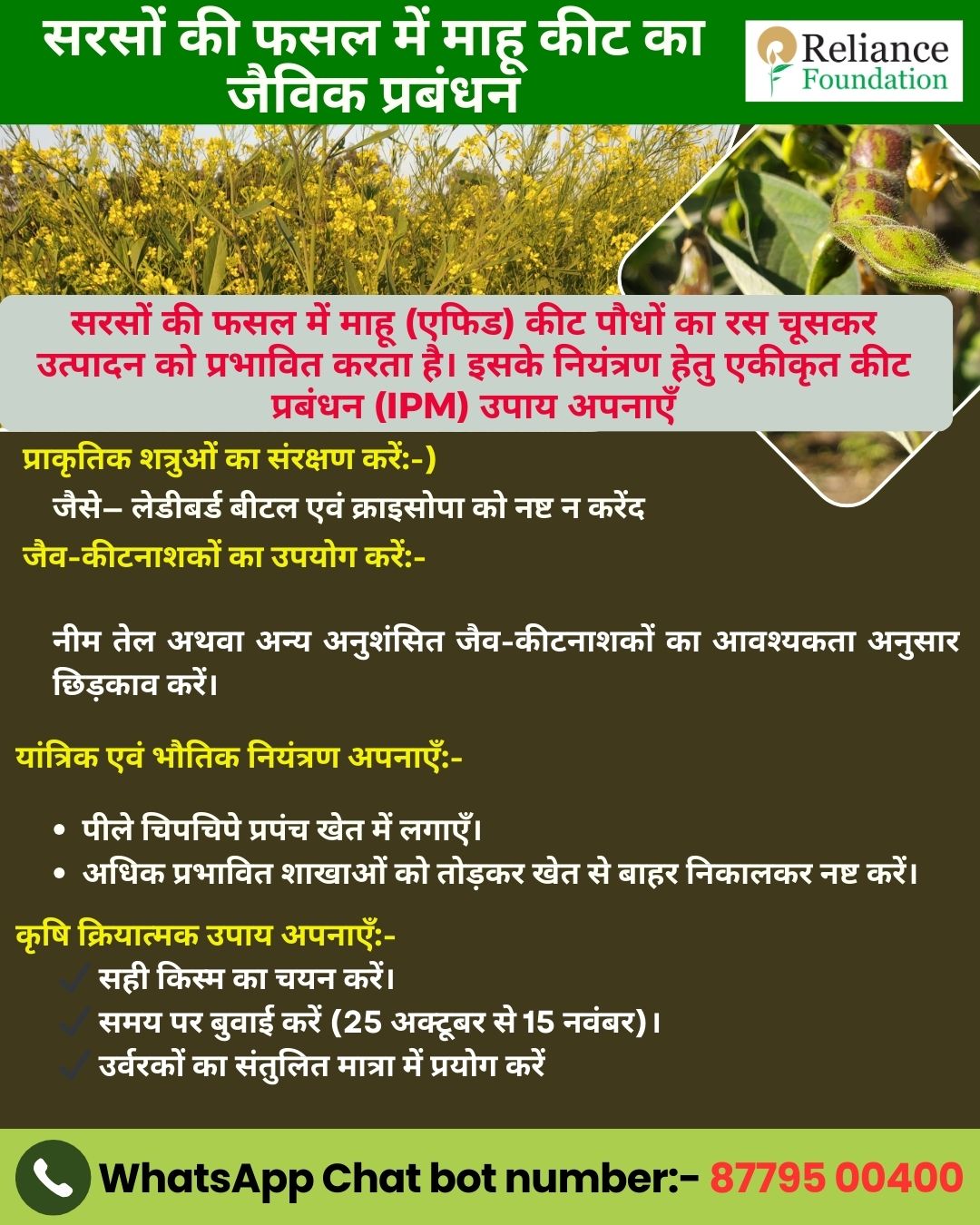 सरसों फसल में कीटों के जैविक नियंत्रण हेतु सलाह