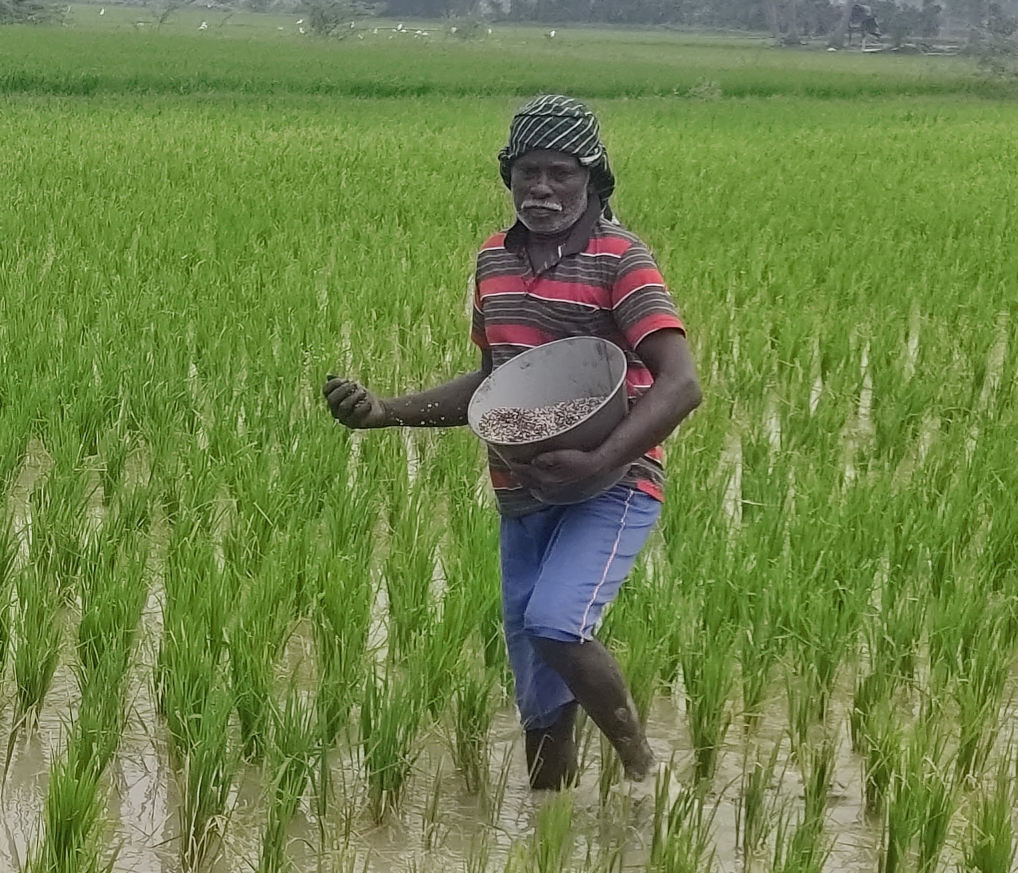 சம்பா நெல் சாகுபடியில் தற்சமயம் பெய்துள்ள மழையால் வயல்களில் தண்ணீர் தேங்கி வடியாமல் இருப்பதால் பயிர்கள் வாடிகாணப்படும். இதனைச் சரிசெய்ய உடனடியாக நீரை வடியசெய்துவிட்டு மேலுரமாக யூரியா 30 கிலோ, ஜிப்சம் 24 கிலோ, வேப்பம் பிண்ணாக்கு 6 கிலோ ஆகியவற்றை முதல் நாள் கலந்து மறு நாள் இவற்றுடன் பொட்டாஷ் 15 கிலோ கலந்து இட வேண்டும். மேலும் உரமிட்ட ஒரு வாரம் கழித்து ஒரு ஏக்கருக்கு 300 கிராம் மோனோ அம்மோனியம் பாஸ்பேட், 300 கிராம் பொட்டாசியம் நைட்ரேட் என்ற மல்ட்டி- கே மற்றும் 100 கிராம் ஜிங்க் சல்பேட் ஆகிய உரத்துடன் 100 கிராம் நீரில் கரைத்த காதி சோப்பு ஆகியவற்றை 100 லிட்டர் நீரில் கலந்து தெளிப்பதால் பயிர் தெளிவு பெறும்.