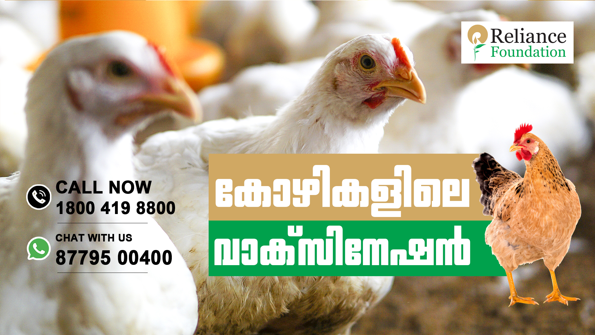 ബ്രോയ്ലർ കോഴികൾക്ക് കോഴി വസന്ത വാക്സിൻ ആണ് ആദ്യം കൊടുക്കേണ്ടത്. കോഴി വസന്ത രോഗത്തിന് RVS വാക്സിൻ 5-7 ദിവസം പ്രായത്തിൽ ഒരു തുള്ളി കണ്ണിലോ മൂക്കിലോ കൊടുക്കണം. ഇതിൻറെ ബൂസ്റ്റർ ഡോസ് 21 ആം ദിവസം കുടിവെള്ളത്തിൽ കൊടുക്കണം. IBD വാക്സിൻ 14 ആമത്തെ ദിവസവും ഇതിൻറെ ബൂസ്റ്റർ ഡോസ് 28 ആം ദിവസം കുടിവെള്ളത്തിൽ കൊടുക്കണം. മുട്ടക്കോഴികൾക്ക് ജനിച്ച ദിവസം തന്നെ മാരെക്സ് രോഗത്തിനെതിരെ ഉള്ള വാക്സിൻ 0.2 മില്ലി കഴുത്തിന് പിറകിൽ എടുക്കണം. കോഴിവസന്തയുടെ വാക്സിൻ 10 ആഴ്ചയിലോ അര കിലോ തൂക്കം ആകുമ്പോൾ RB2B അല്ലെങ്കിൽ RDVK വാക്സിൻ നൽകണം, ഇതിൻറെ ബൂസ്റ്റർ വാക്സിൻ 16 ആഴ്ചയിൽ നൽകണം. കോഴികൾക്ക് വിര മരുന്ന് നൽകിയ ശേഷം വേണം ഈ വാക്സിൻ കൊടുക്കാൻ. മുട്ടക്കോഴികൾക്ക് ഫൗൾ പോക്സ് അഥവാ കോഴി കുരുപ്പ് രോഗത്തിനെതിരെ ഉള്ള വാക്സിൻ ചിറകിൻറെ അടിയിൽ നൽകണം.